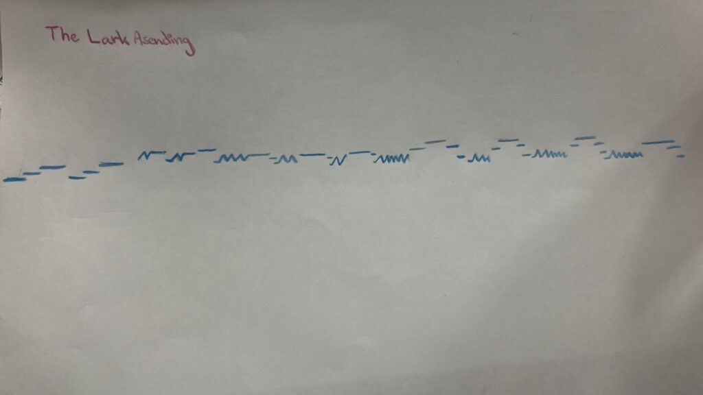 Komponist Ralph Vaughan : Seine Musik klingt meistens hell, leicht und beruhigend. In dem Lied geht es um eine Lerche(Vogel) die in die Luft steigt manchmal schnell und manchmal langsamer. Am Anfang vom Stück spielt die Geige/ Violline ganz zarte Töne , die an Vogelstimmen erinnern. dann wird die Musik manchmal lauter oder schneller , als würde der Vogel höher steigen oder schneller fliegen